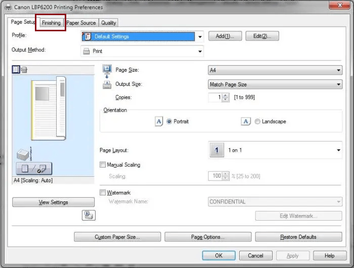 Click chọn tab Finishing.