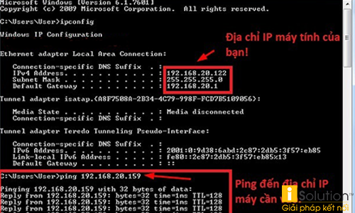 Kiểm tra 2 máy tính đã thông nhau chưa.