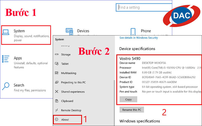 Bên cạnh việc nghe bên bán thuật lại các thông số cấu hình của máy thì bạn có thể tự mình kiểm tra lại bằng cách vào Settings, chọn System sau đó chọn mục About ở thanh công cụ bên trái.